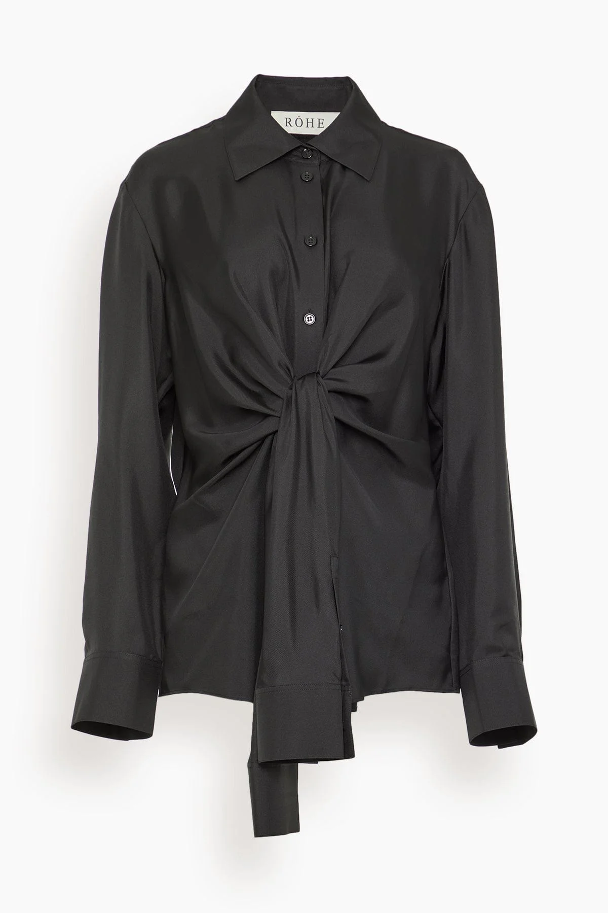 The Rohe Silk Knotted Shirt has great versatility for your wardrobe. This button down silk top features a knot detail at the waist with a relaxed fit. Wear yours with trousers and flats. FIT DESCRIPTION MODEL MEASUREMENTS - Fits true to size, take your normal size - Button down shirt - Relaxed fit - Knot detail - 77% silk and 23% nylon - Kyndal is wearing a size 34/ 2 US - Bust: 32" - Waist: 24" - Hips: 35“ - Height: 5’6”