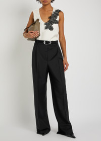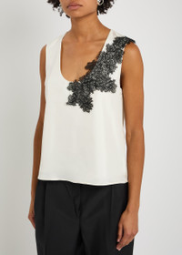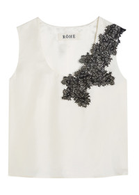 Info & Care Rohe silk top Lace embellishment, scoop-neck, fully lined Slips on 100% silk; lining: 100% viscose; lace trim: 57% nylon, 43% polyester Dry clean Size & Fit Length shoulder to hem: 23 inches/ 58.5cm Midweight Relaxed fit Model is 5'9"/ 175cm and wears a size;FR36