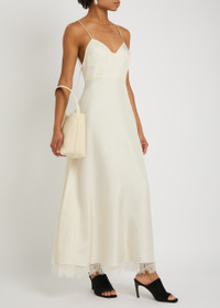 Info & Care Rohe silk dress Sweetheart-neck, tie fastening at back, lace hem, fully lined Concealed zip fastening through side; 100% silk; lining: 100% viscose; lace: 56% nylon, 44% polyester Dry clean; Size & Fit Length shoulder to hem: 55 inches/ 139.5cm Midweight Slim bodice, more relaxed skirt Model is 5'9"/ 175cm and wears a size;FR36