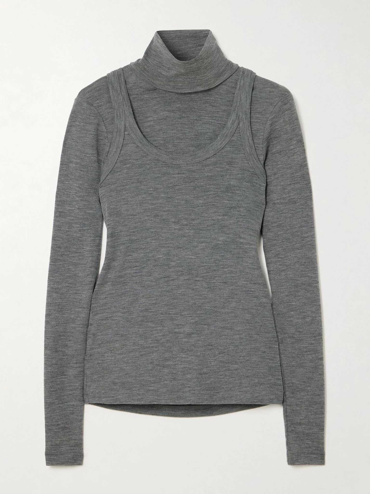 Convertible layered merino wool-jersey turtleneck top Charcoal