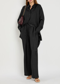 Info & Care Rohe silk trousers Elasticated drawstring waist, faux fly, two slip pockets Pull on 100% silk Dry clean; Size & Fit Inside leg length: 32 inches/ 81.5cm Midweight; Loose fit, wide-leg cut; Model is 5'9"/ 175cm and wears a size FR36