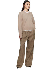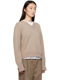 Knit wool- and cashmere-blend sweater. · Rib-knit V-neck, hem, and vented cuffs · Cutout at armscyes for alternate styling · Saddle shoulders Supplier color: Taupe melange 70% wool, 30% cashmere. Made in Italy 252144F100003