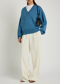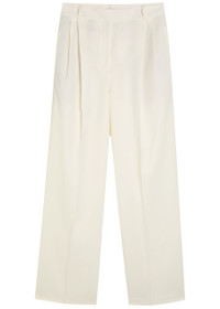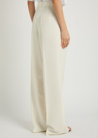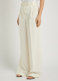 Info & Care Rohe wool-blend trousers Belt loops, pleats at waist, side slip pockets, pressed crease through legs, two faux back slit pockets Concealed hook, button and zip fastening at front 50% wool, 50% polyester Dry clean Size & Fit Inside leg length: 34.5 inches/ 87.5cm Midweight Mid-rise fit,;wide-leg cut Model is 5'10"/ 178cm and wears a size;FR36