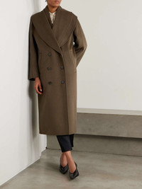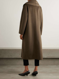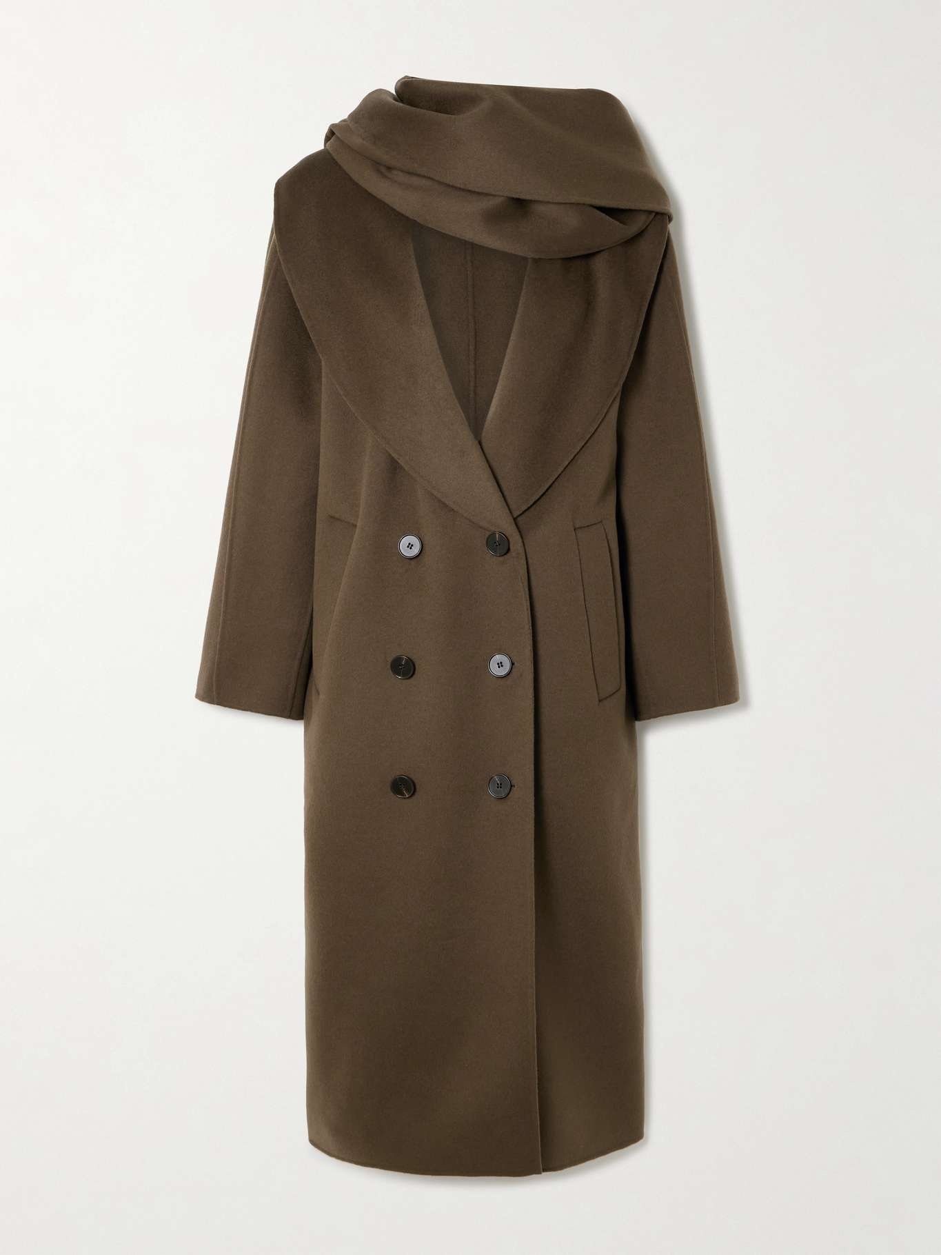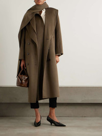 EDITORS'NOTES Modernity, style and functionality seamlessly combine in ROHE's collections with designs like this coat. Made from softly brushed double-faced wool, it has a relaxed double-breasted profile and an attached scarf - wear yours wrapped around your neck or layered over the shawl lapels. SIZE & FIT Model measurements: - Fits true to size, take your normal size - Designed for a loose fit - Mid-weight, non-stretchy fabric - Model is 180cm/ 5'11" and is wearing a FR 36 - Bust: 76cm/ 30" - Waist: 64cm/ 25" - Hip: 86cm/ 34" DETAILS & CARE - Brown wool - Button fastenings through double-breasted front - 100% wool; lining: 100% polyester - Dry clean