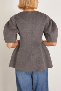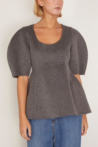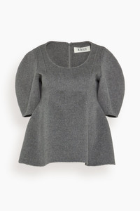 The Rohe Sculptural Double-Faced Top is a standout piece from their Fall 25 Collection. You'll love the sculptural silhouette of this wool blend top with wide sleeves and a peplum hemline. Wear yours with trousers and flats. - Sculptural top - Scoop neckline - Peplum hemline - Wide sleeves - 95% wool 5% cashmere