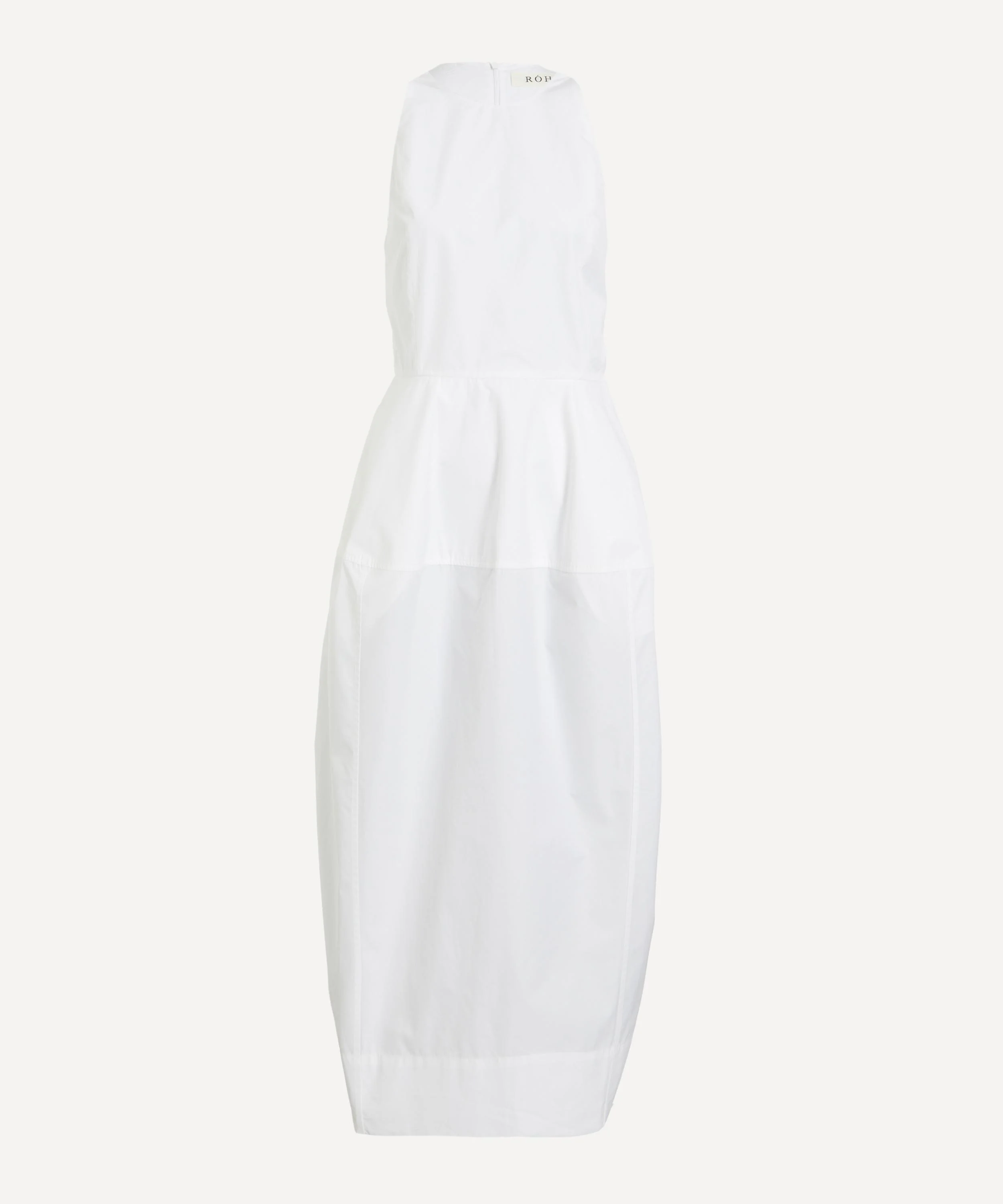 DETAILS Sculptural dress Cotton poplin Sleeveless Fitted waist Trapezium-shaped skirt Back slit Thick straps Back zip SIZE & FIT Model is 180cm/5'11"; Chest: 81cm; Waist: 61cm; Hip: 88cm and wears a size 36 COMPOSITION & CARE 100% Cotton Dry clean only