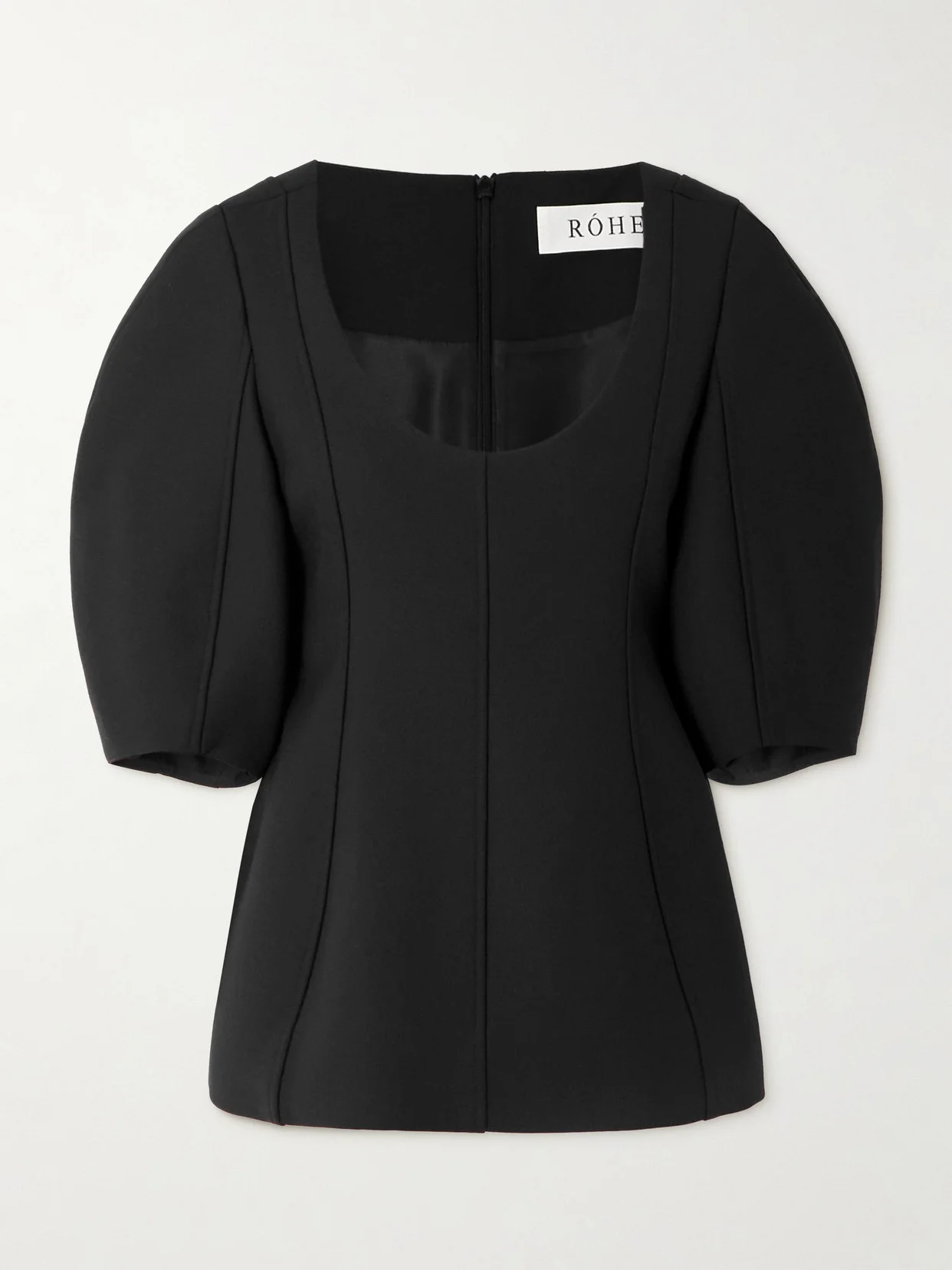 ROHE's top has a structural shape accentuated by raised seems. It's been made in Italy from wool-blend and is designed with oversized puffed sleeves and a nipped-in waist.