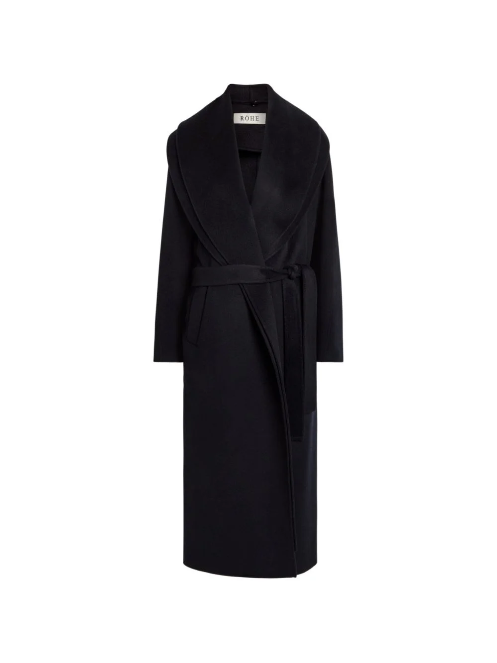 shawl-collar belted coat Highlights - Blue - Shawl collar - Belt - Long sleeves - Midi length Imported Composition Wool 95%, Cashmere 5% Washing instructions Read Manufacturer Guidelines