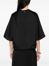 short-sleeve silk top Highlights - Black - Short sleeves - Round neck - Relaxed fit - Back button fastening Imported Composition Silk 100% SIZE & FIT Model measurements Height 5 ft 10 in(1.78 m) Bust/Chest 33.46 in(85 cm) Hips 36.22 in(92 cm) Waist 23.22 in(59 cm) Washing instructions Dry Clean Only