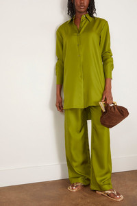 The Rohe Signature Elongated Silk Shirt is a twist on a classic. This button down shirt features an oversized fit with a longer length in silk. Wear yours with trousers and flats. FIT DESCRIPTION MODEL MEASUREMENTS - Oversized fit; we suggest taking your normal size for the designed fit - Long length - Drop shoulders - 100% silk - Elishia is wearing a size 34/ 2 US - Bust: 34" - Waist: 27" - Hips: 35" - Height: 5’10”