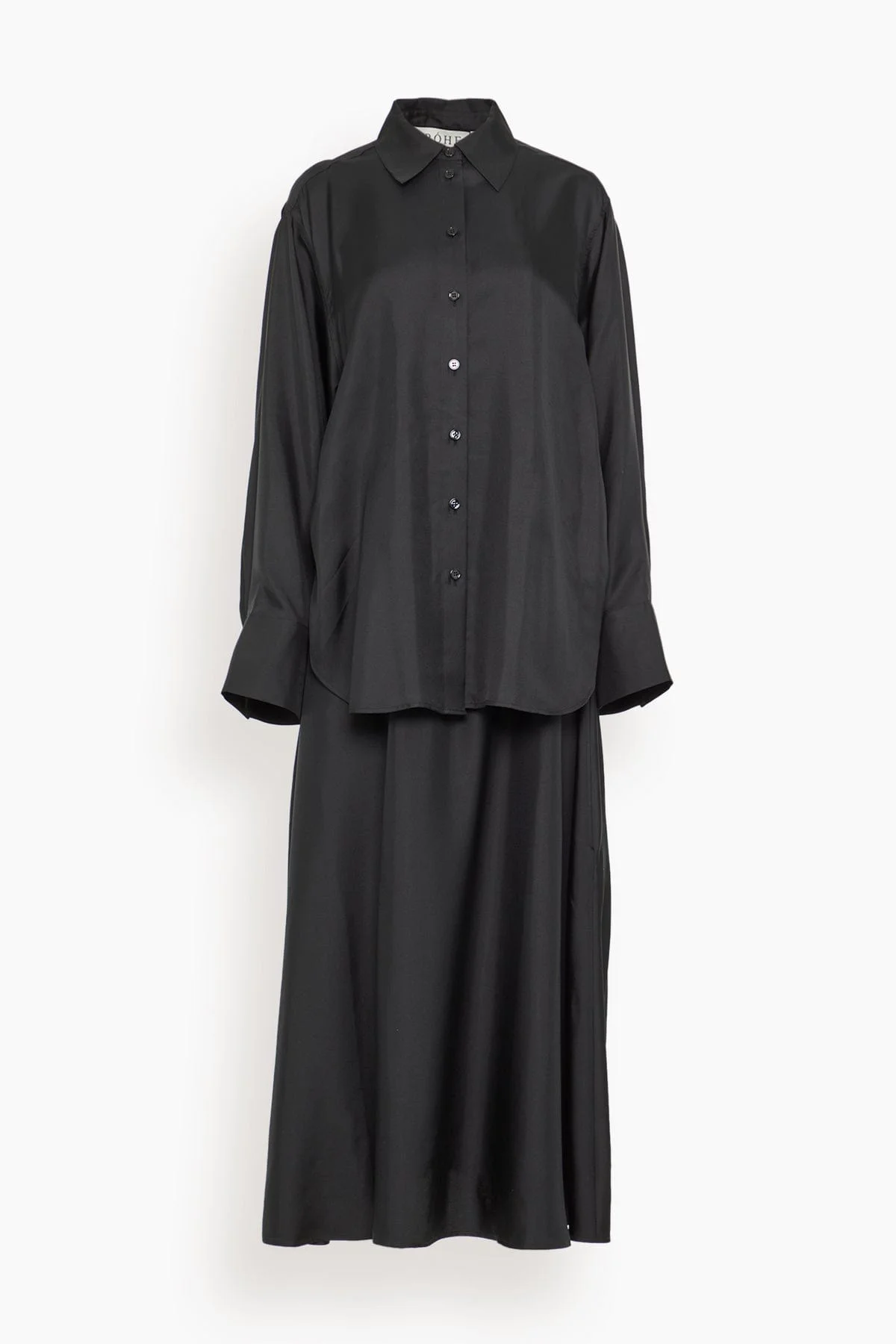 The Rohe Silk Gilet-Dress offers a two-in-one look. You'll love the button down shirt top that can be styled multiple ways with the classic silk skirt. Wear yours with boots and a shoulder bag. FIT DESCRIPTION MODEL MEASUREMENTS - Fits true to size, take your normal size - Gilet dress - Button down top - Slip skirt - Relaxed fit - Layered look - 100% silk - Kortney is wearing a size 34/ 2 US - Bust: 29" - Waist: 22" - Hips: 34“ - Height: 5’10”