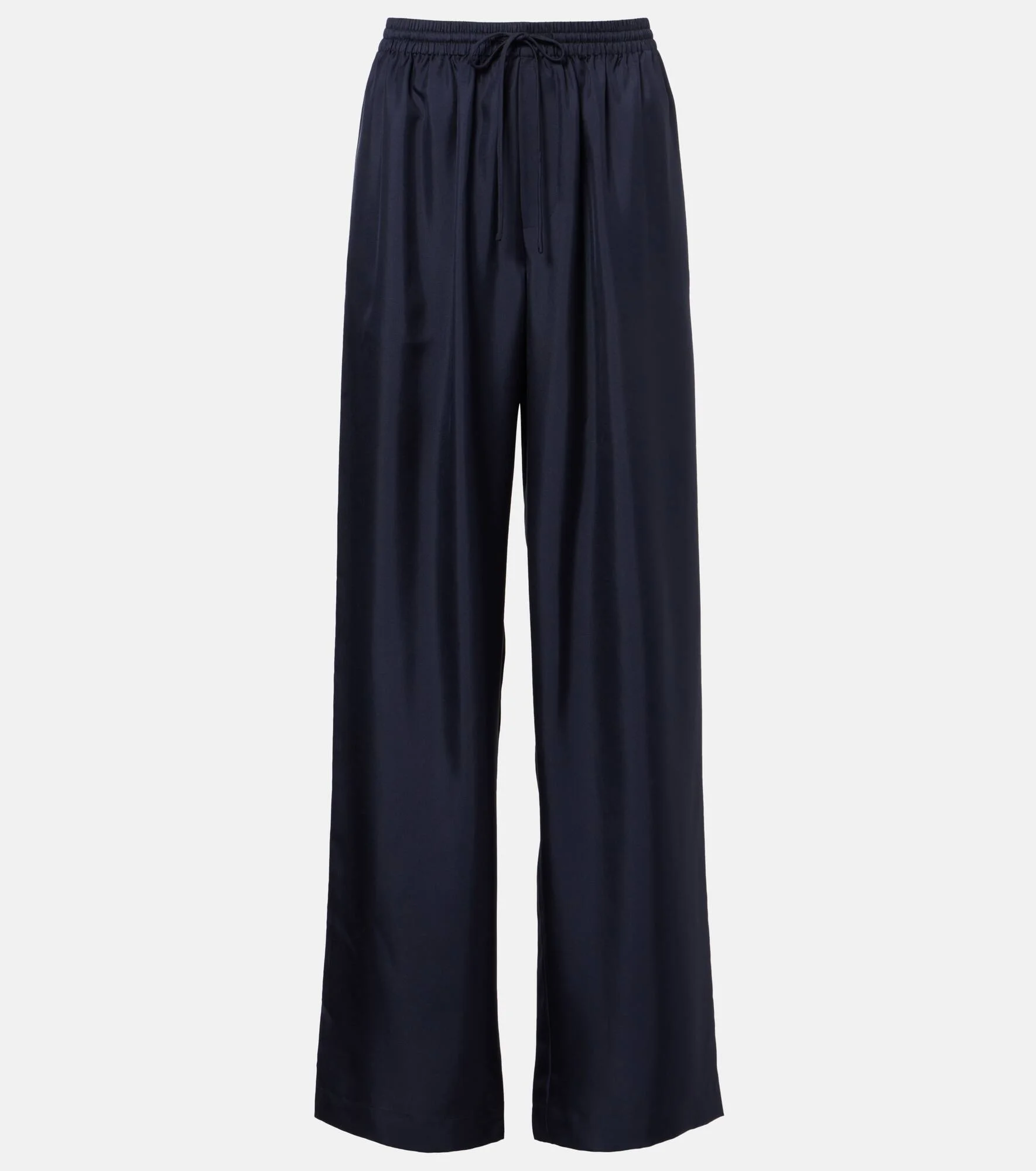 Exude timeless elegance in these pants from Rohe. Crafted in Italy from pure silk, the pair is shaped to a flowing, straight-leg silhouette with a comfortable elasticated drawstring waistband. Product Details - Material: 100% silk - Care instructions: dry clean - Made in Italy - Color: blue - Designer color name: Night - Elasticated drawstring waist - Pockets: side slit pockets - Item number: P01140020 Size & Fit - True to size - Elasticated waist - Adjustable at the waist - Non-stretchy fabric - Wide-leg - The model seen in the picture is 178cm-5'10" and wearing a size FR 34