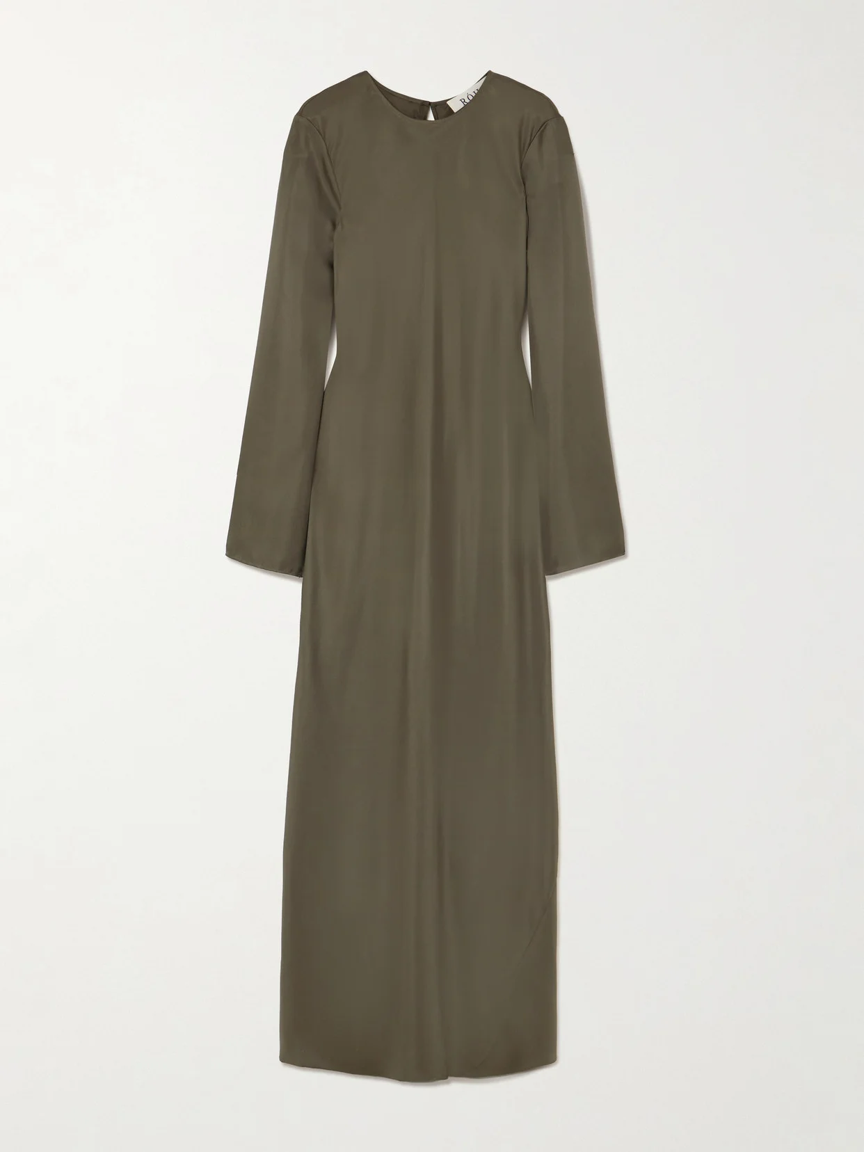 ROHE's dress is made from the brand's signature silk-twill - the fabric has such a beautiful drape. It's designed for a slightly loose fit with wide, long sleeves. Complement the brown shade with gold jewelry.