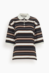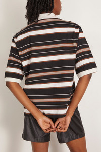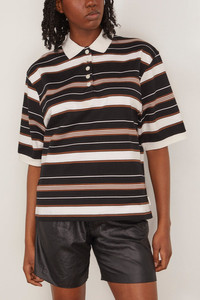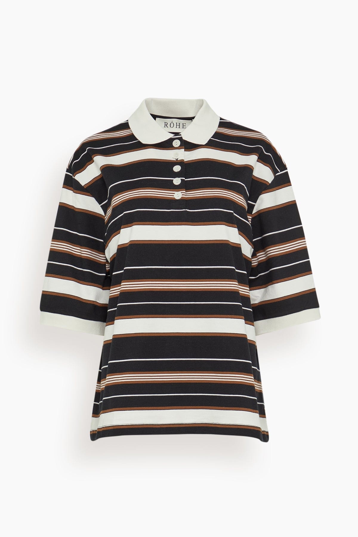 The Rohe Striped Oversized Polo is a classic with a twist. This polo has an oversized fit and is crated in a striped organic cotton. Wear yours with jeans and flats. FIT DESCRIPTION MODEL MEASUREMENTS - Oversized fit; take your normal size for the designed fit - Drop shoulders - 100% organic cotton - Emma is wearing a size 34/ 2 US - Bust: 32” - Waist: 25” - Hips: 34” - Height: 5’7”