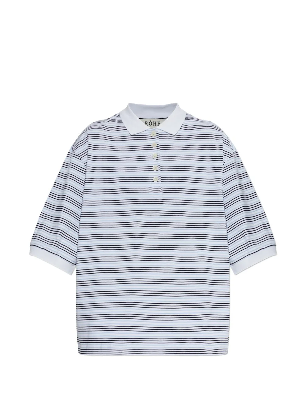 striped-pattern buttoned polo shirt Highlights - White and blue - Horizontal stripe - Polo collar - Front button fastening - Short sleeves - Cotton Imported Composition Cotton 100% Washing instructions Read Manufacturer Guidelines