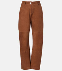 Exude timeless sophistication in these pants from Rohe. Crafted in Italy from supple suede, the pair boasts a flattering barrel-leg silhouette. Product Details - Material: 100% goat leather (suede) - Care instructions: specialist clean - Made in Italy - Color: brown - Designer color name: Tobacco - Lining: 100% viscose - Belt loops - Pockets: side slit pockets, back pockets - Closure: zipper fly, button fastening - Item number: P01139955 Size & Fit - True to size - Non-stretchy fabric - Tapered leg - High-waisted - The model seen in the picture is 178cm-5'10" and wearing a size FR 34