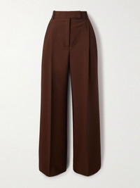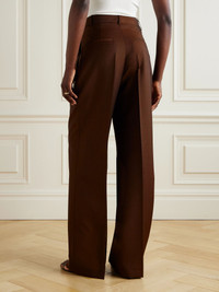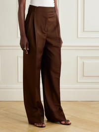 ROHE's pants are a testament to the beauty of simplicity. They're cut wide from a virgin wool and mohair-blend and have sharp pleats along the front to elongate your legs. Size & Fit - Fits true to size, however those who are between sizes should take the smaller size - High-rise, cut for a wide-leg fit - Mid-weight, non-stretchy fabric - Model is 177cm/ 5'10" and is wearing a FR 34 Model measurements: - Bust: 80cm/ 31.5" - Waist: 60cm/ 23.5" - Hip: 89cm/ 35" Details & Care - Brown wool and mohair-blend - Concealed hook and zip fastening at front - 73% wool, 27% mohair - Dry clean