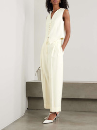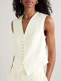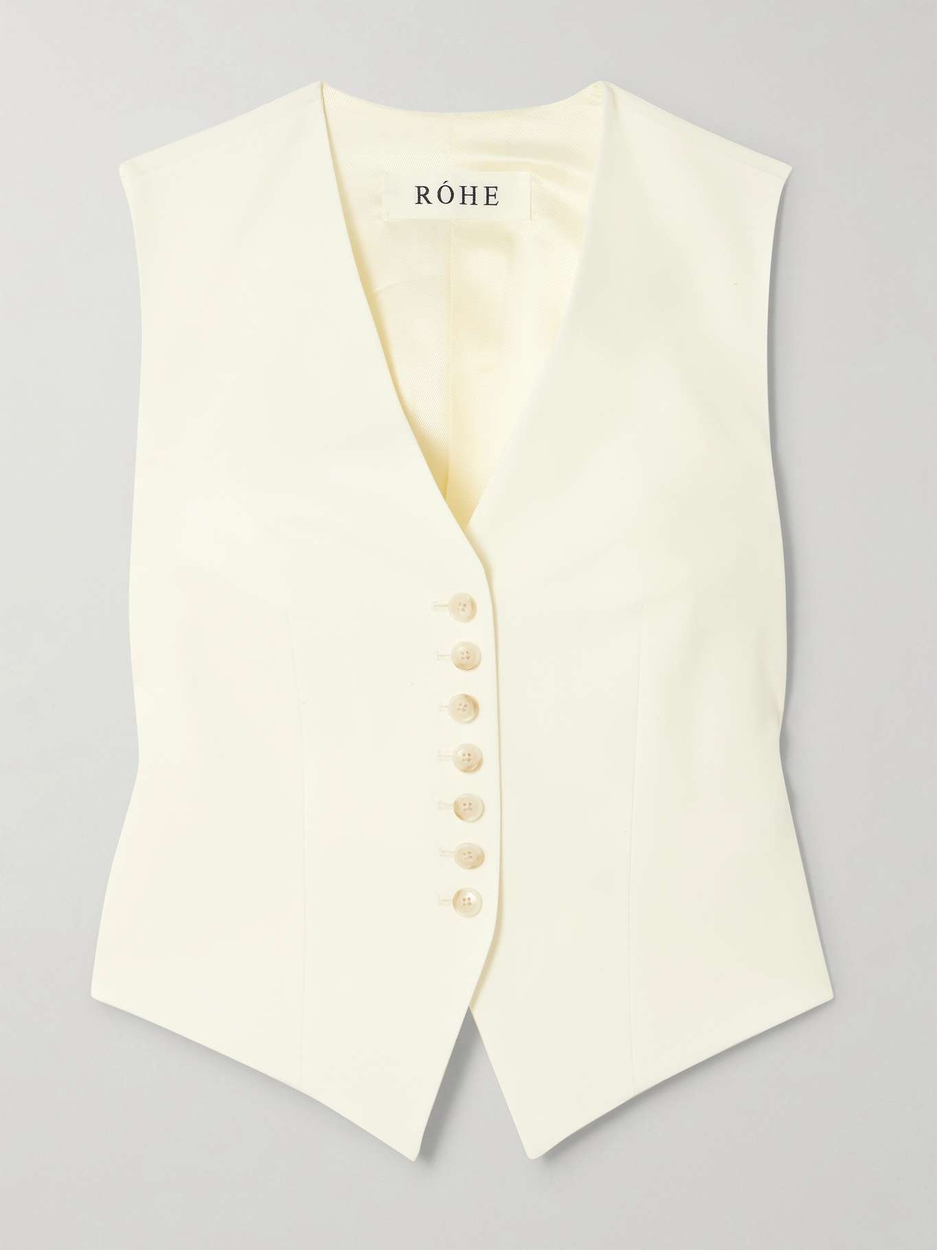 EDITORS'NOTES ROHE's vest reflects the label's eye for modern minimalism. Tailored from off-white wool, it's lined with lustrous satin and fastens with seven glossy buttons. Team it with jeans or the matching trousers. SIZE & FIT Model measurements: - Fits true to size, take your normal size - Tailored for a close fit - Mid-weight, non-stretchy fabric - Model is 177cm/ 5'10" and is wearing a FR 36 - Bust: 77cm/ 30.5" - Waist: 62cm/ 24.5" - Hip: 88cm/ 34.5" DETAILS & CARE - Off-white wool - Button fastenings through front - 100% virgin wool; lining: 100% viscose - Dry clean