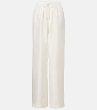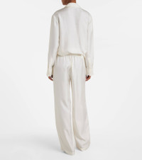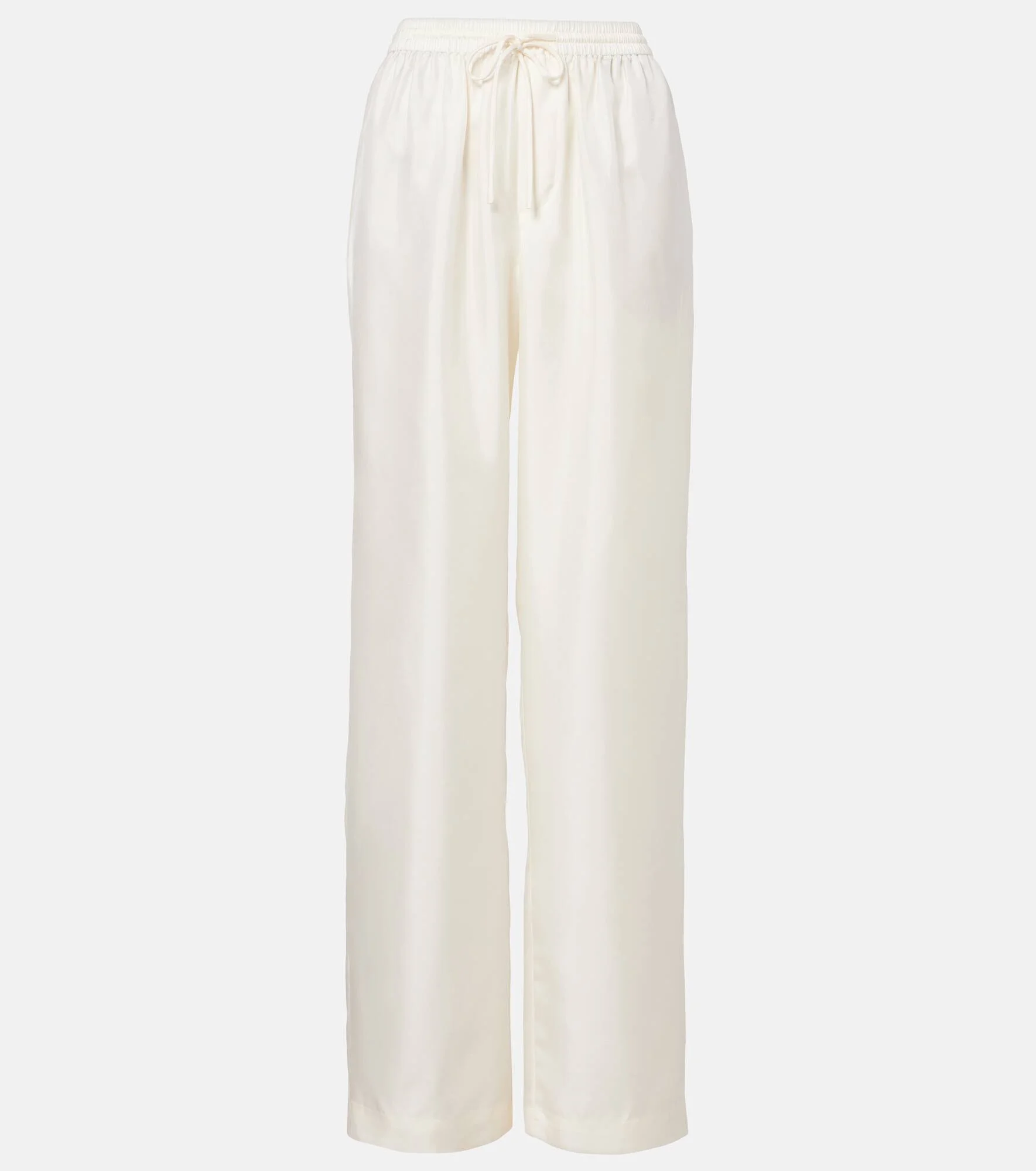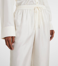 Rohe favors a multifaceted approach to design, infusing every collection with elements of Dutch art and architecture. These elegant wide-leg pants are constructed from featherweight silk satin and feature an elasticated drawstring waist for comfort. Product Details - Material: 100% silk - Care instructions: dry clean - Made in Italy - Designer color name: Cream - Item color: white - Elasticated drawstring waist - Pockets: side slit pockets - Item number: P01073431 Size & Fit - True to size - Elasticated waist - Adjustable at the waist - Non-stretchy fabric - Wide-leg - The model seen in the picture is 178cm-5'10" and wearing a size FR 34