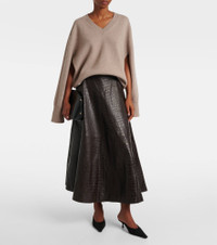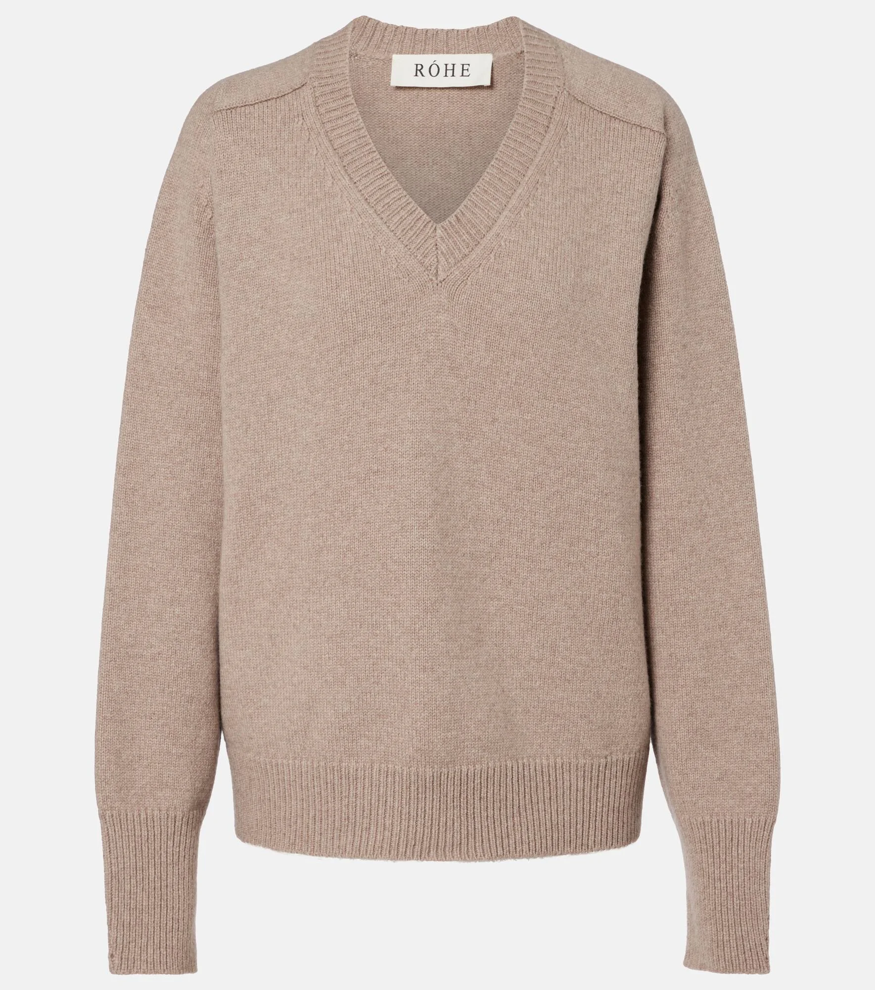 Knitted from wool and cashmere, this Rohe sweater is a timeless wardrobe staple. The casual yet sophisticated piece features a flattering V-neckline and ribbed trims for a refined finish. Product Details - Material: 70% wool, 30% cashmere - Care instructions: dry clean - Made in Italy - Designer color name: Taupe Melange - Item color: beige - Collar: V-neck - Cuff: ribbed - Hem: ribbed - Item number: P01103202 Size & Fit - True to size - Dropped shoulders - Designed for a loose fit - Slightly stretchy fabric - Falls to the hip - The model seen in the picture is 178cm-5'10" and wearing a size FR 34