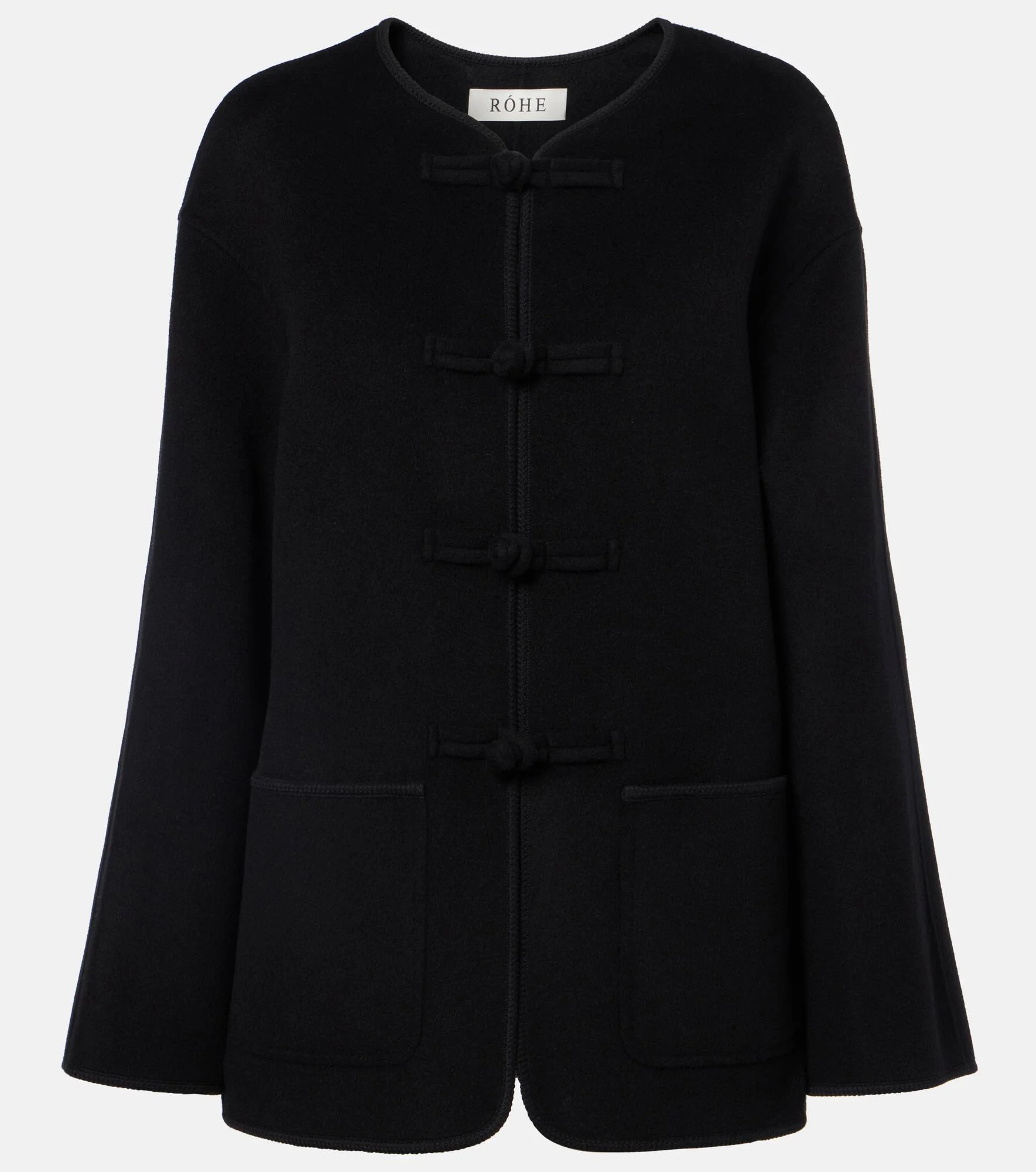 Exude timeless elegance in this jacket from Rohe. Crafted in Italy from wool, the design boasts toggle fastenings and front patch pockets. Product Details - Material: 100% wool - Care instructions: dry clean - Made in Italy - Color: black - Designer color name: Black - Pockets: patch pockets - Closure: toggle fastenings - Item number: P01140000 Size & Fit - True to size - Designed for a loose fit - Non-stretchy fabric - Falls below the hip - The model seen in the picture is 178cm-5'10" and wearing a size FR 34