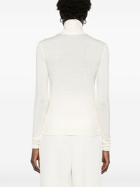 wool top Highlights - Ecru - Roll neck - Long sleeves Imported Composition Wool 100% SIZE & FIT Model measurements Height 5 ft 11 in(1.8 m) Bust/Chest 32.67 in(83 cm) Hips 36.22 in(92 cm) Waist 24.4 in(62 cm) FittingInformation Designed for a slim fit that sits just away from the body offering a close yet comfortable fit Made from a lightweight non-stretch fabric, this piece offers minimal elasticity when worn
