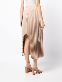 arch pleated midi skirt light brown stretch-design high-waisted pleated skirt asymmetric design mid-length Imported Composition Body: Polyester 80%, Viscose 18%, Spandex/Elastane 2% SIZE & FIT Model measurements Height 5 ft 9 in(1.76 m) Bust/Chest 31.1 in(79 cm) Hips 35.03 in(89 cm) Waist 24.4 in(62 cm) FittingInformation This piece fits large – you might want to get one size down Designed to be fitted at the waist, loose over the leg Made with a mid-weight fabric Washing instructions Dry Clean Only