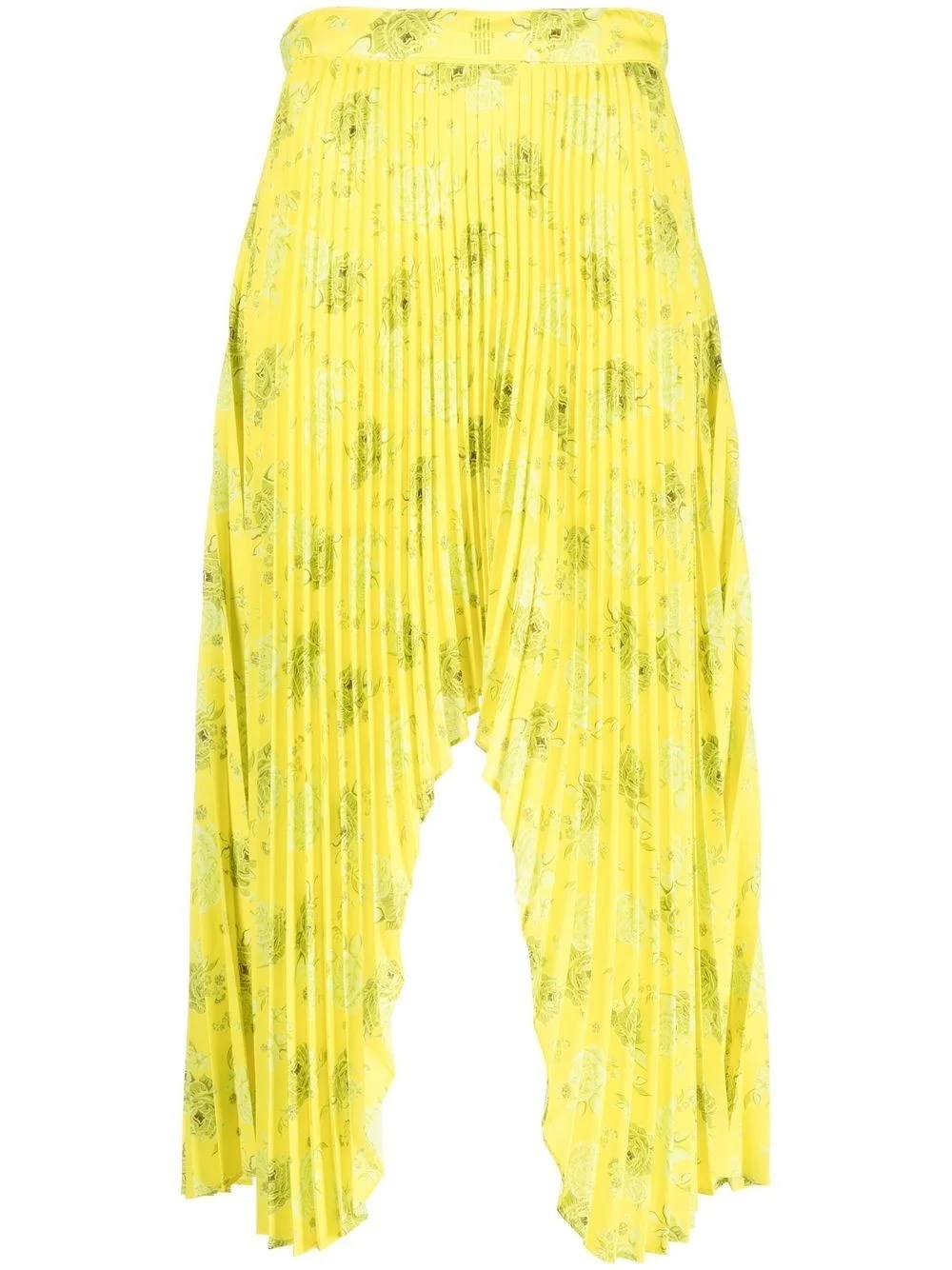 arch pleated midi skirt yellow stretch-design all-over floral print high-waisted pleated skirt asymmetric design mid-length Imported Composition Body: Polyester 100% SIZE & FIT Model measurements Height 5 ft 10 in(1.77 m) Bust/Chest 29.92 in(76 cm) Hips 34.25 in(87 cm) Waist 23.62 in(60 cm) FittingInformation This piece fits true to size. We recommend you get your regular size Designed to be fitted at the waist, loose over the leg Made with a mid-weight non-stretch fabric