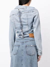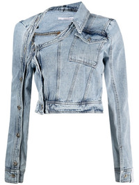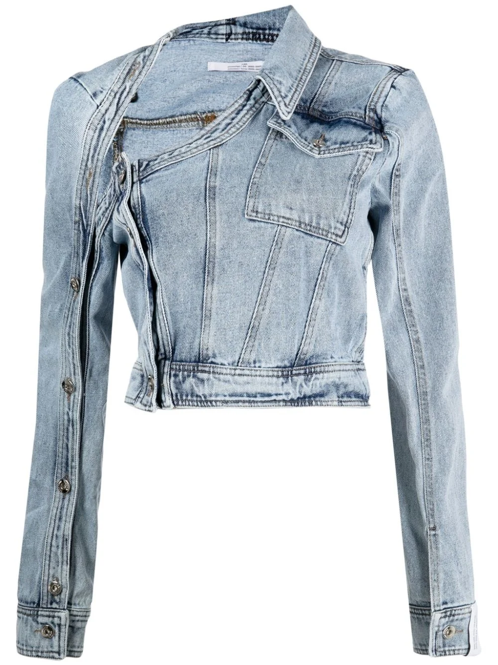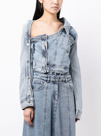 asymmetric-neck denim jacket Highlights - Light blue - Cotton - Asymmetric neck - Front button fastening - Rear button fastening - Long sleeves - Chest flap pocket - Straight hem Imported Composition Cotton 100% SIZE & FIT Model measurements Height 5 ft 10 in(1.77 m) Bust/Chest 28.74 in(73 cm) Hips 35.82 in(91 cm) Waist 24.4 in(62 cm) FittingInformation Designed for a slim fit that sits just away from the body offering a close yet comfortable fit Cropped in length Made from a midweight non-stretch fabric, this piece offers minimal elasticity when worn This piece fits true to size – take your usual size Washing instructions Dry Clean Only