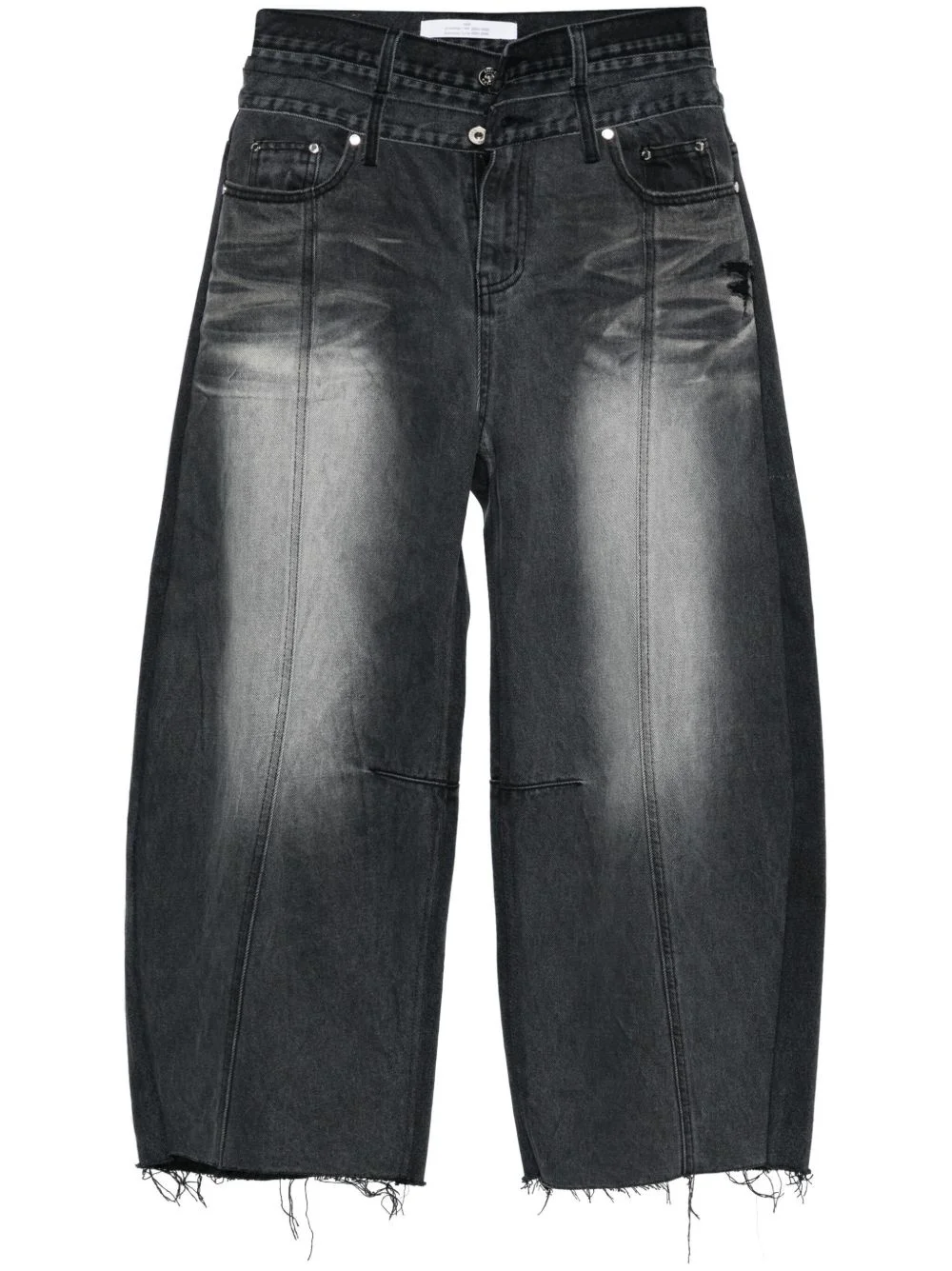 Ballon shaped layered jeans Highlights - Black - Cotton - Washed denim - Tapered leg - Layered details - Belt loops - Classic five pockets - Logo patch to the rear - Frayed hem - Front button and zip fastening Imported Composition Cotton 100% SIZE & FIT Model measurements Height 5 ft 9 in(1.76 m) Bust/Chest 31.88 in(81 cm) Hips 35.43 in(90 cm) Waist 24.8 in(63 cm) FittingInformation Designed for a tapered fit, these jeans allow a close fit at the waist and a loose unrestricted fit over the leg with a closer fit towards the ankle Sturdy and hard-wearing, this denim piece offers no stretch This piece fits true to size – take your usual size