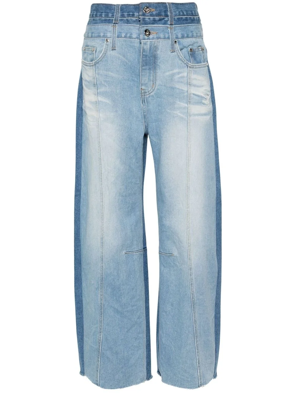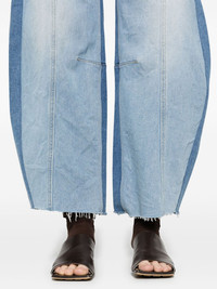 logo-patch jeans Highlights - Light blue - Cotton - Washed denim - Logo patch to the rear - Raised seam detail - Contrast stitching - Concealed fly and button fastening - Double high-waisted - Belt loops - Classic five pockets - Whiskering effect at the thighs - Unlined - Frayed hem - Tapered leg Imported Composition Cotton 100% SIZE & FIT Model measurements Height 5 ft 9 in(1.75 m) Bust/Chest 34.64 in(88 cm) Hips 36.61 in(93 cm) Waist 26.37 in(67 cm) FittingInformation Designed with a wide leg cut, these jeans allow for a close fit at the waist and offer a loose and roomy fit over the leg Sturdy and hard-wearing, this denim piece offers no stretch