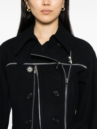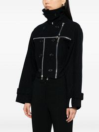 Broken jacket Highlights - Dark blue - Front zip fastening - Two side jetted pockets - Long sleeves Imported Composition Lining: Polyester 100% Outer: Wool 76%, Nylon 24% SIZE & FIT Model measurements Height 5 ft 10 in(1.77 m) Bust/Chest 30.31 in(77 cm) Hips 34.25 in(87 cm) Waist 25.19 in(64 cm) FittingInformation Designed for a slim fit that sits just away from the body offering a close yet comfortable fit Cropped in length Made from a midweight non-stretch fabric Washing instructions Dry Clean Only