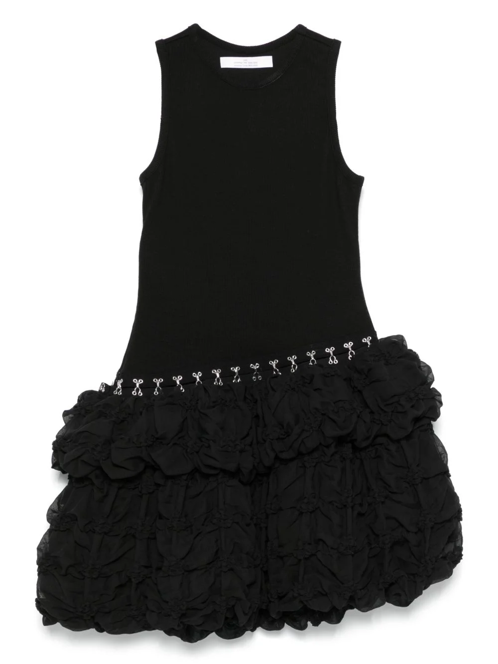 Broken mini dress Highlights - Black - Concealed side zip fastening - Detachable panels - Ruffle hem - This piece can be styled in multiple ways. Imported Composition Lining: Polyester 100% Outer: Cotton 94%, Spandex/Elastane 6% SIZE & FIT Model measurements Height 5 ft 10 in(1.78 m) Bust/Chest 33.46 in(85 cm) Hips 36.22 in(92 cm) Waist 23.22 in(59 cm) FittingInformation Designed for a close fit at the chest and waist with a loose fit at the hip The detachable panel offers the preference for a different fit Made from a midweight fabric