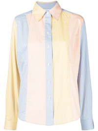 colour-block striped shirt multicolour cotton pinstripe pattern classic collar front button fastening long sleeves curved hem Imported Composition Body: Cotton 100% SIZE & FIT Model measurements Height 5 ft 10 in(1.77 m) Bust/Chest 31.49 in(80 cm) Hips 35.43 in(90 cm) Waist 25.19 in(64 cm) FittingInformation This piece fits true to size. We recommend you get your regular size Cut for a loose fit Made with a mid-weight non-stretch fabric