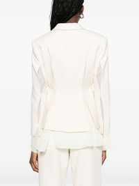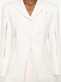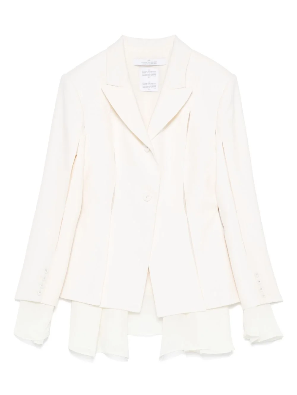 cut-out layered blazer Highlights - Light beige - Front button fastening - Peak lapels - Buttoned-cuff sleeves - Shoulder pads Imported Composition Outer: Polyester 100% Lining: Polyester 100% SIZE & FIT Model measurements Height 5 ft 10 in(1.78 m) Bust/Chest 31.49 in(80 cm) Hips 37 in(94 cm) Waist 23.62 in(60 cm) FittingInformation Designed for a slim fit that sits just away from the body offering a close yet comfortable fit The internal shoulder pads offer a structured shape Made from a midweight non-stretch fabric