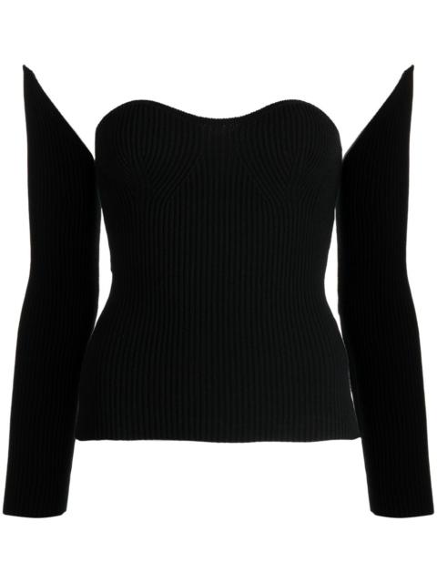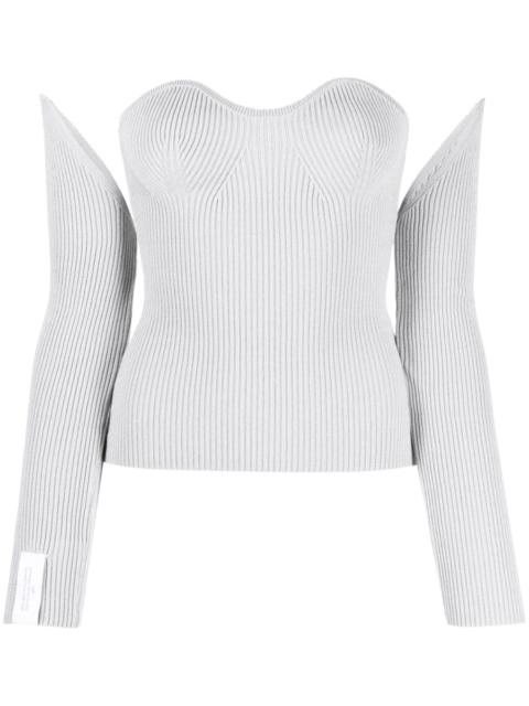 detachable-sleeve ribbed-knit top Highlights - Black - Ribbed knit - Logo patch at the sleeve - Bustier-style neckline - Pull-on style - Detachable long sleeves - Ribbed cuffs and hem Imported Composition Viscose 70%, Polyester 30% SIZE & FIT Model measurements Height 5 ft 10 in(1.78 m) Bust/Chest 30.31 in(77 cm) Hips 34.64 in(88 cm) Waist 24.01 in(61 cm) Measurement SLEEVE LENGTH 20.86 in(53 cm) LENGTH 12.59 in(32 cm) BUST 17.32 in(44 cm) FittingInformation Designed for a close fit throughout Made with a lightweight knit, this piece offers some stretch This piece fits close in all sizes – take your usual size