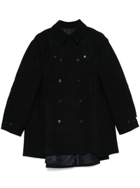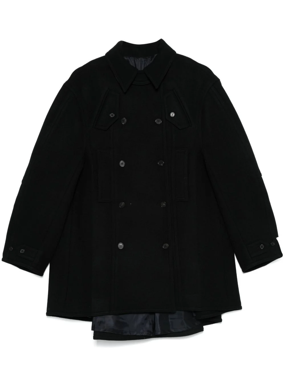 double-breasted coat Highlights - Midnight blue - Wool blend - Felted finish - Double-breasted button fastening - Pointed flat collar - Detachable neck strap - Drop shoulder - Long sleeves - Buttoned-cuff sleeves - Two side slit pockets - Pleat detailing to the rear - Full lining - High-low hem Imported Composition Outer: Wool 96%, Polyurethane 4% Lining: Viscose 52%, Polyester 48% SIZE & FIT Measurement SLEEVE LENGTH 22.83 in(58 cm) LENGTH 35.82 in(91 cm) WAIST 53.54 in(136 cm) BUST 48.81 in(124 cm) Shoulder Width 19.68 in(50 cm)