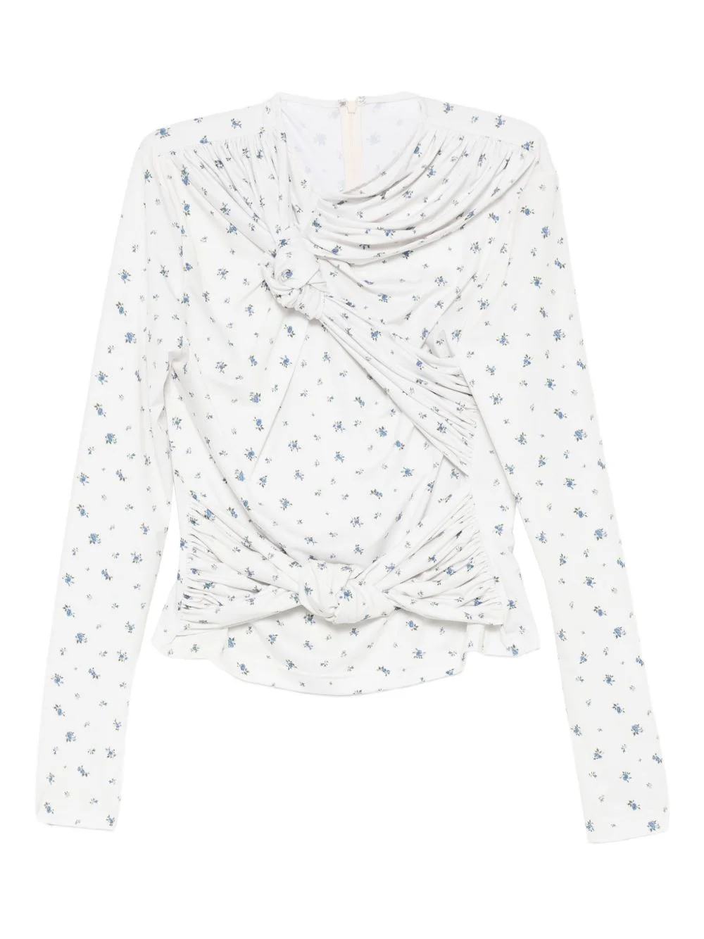 floral-print knot-detail blouse Highlights - White/blue - Floral print - Long sleeves - Knot detail - Draped detail Imported Composition Fabric 100% Washing instructions Read Manufacturer Guidelines
