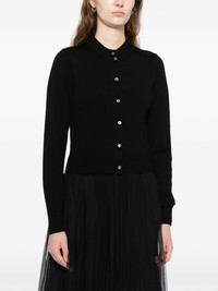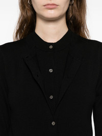 layered cardigan Highlights - Black - Front button fastening - Long sleeves - Fitted cuffs - Straight hem - Round neck Imported Composition Merino 100% SIZE & FIT Model measurements Height 5 ft 10 in(1.77 m) Bust/Chest 31.88 in(81 cm) Hips 36.61 in(93 cm) Waist 26.37 in(67 cm) FittingInformation Designed for a slim fit that sits just away from the body offering a close yet comfortable fit The ribbed hem offers a close, comfortable fit Made with a lightweight knit, this piece offers some stretch This piece fits small – take one size up Washing instructions Dry Clean Only