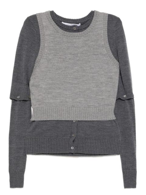 layered cardigan top Highlights - Stone grey - Crew neck - Detachable cardigan - Ribbed cuffs and hem Imported Composition Merino 100% SIZE & FIT Model measurements Height 5 ft 10 in(1.78 m) Bust/Chest 31.88 in(81 cm) Hips 37 in(94 cm) Waist 25.19 in(64 cm) FittingInformation Designed for a slim fit that sits just away from the body offering a close yet comfortable fit Made with a midweight knit, this piece offers some stretch Washing instructions Dry Clean Only
