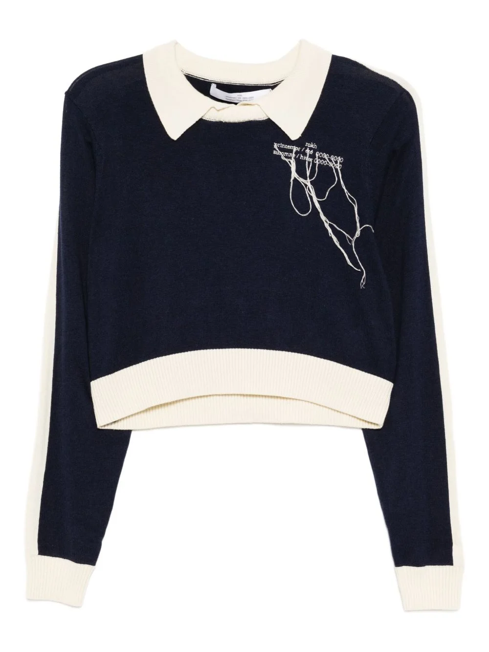 logo-embroidered jumper Highlights - Navy blue - Polo collar - Long sleeves - Ribbed cuffs and hem Imported Composition Viscose 60%, Cotton 40% SIZE & FIT Model measurements Height 5 ft 9 in(1.76 m) Bust/Chest 31.1 in(79 cm) Hips 35.03 in(89 cm) Waist 24.4 in(62 cm) FittingInformation Designed to be unstructured, offering a loose fit throughout Cropped in length Made with a midweight knit, this piece offers some stretch