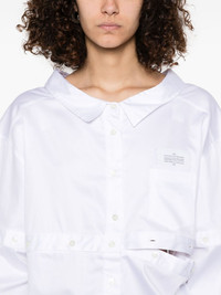 Multi-Button Broken shirt Highlights - White - Front button fastening - Chest patch pocket - Logo patch to the front - Buttoned-cuff sleeves Imported Composition Cotton 96%, Elastane 4% SIZE & FIT Model measurements Height 5 ft 10 in(1.79 m) Bust/Chest 31.88 in(81 cm) Hips 35.43 in(90 cm) Waist 23.62 in(60 cm) FittingInformation Designed to be unstructured, offering a loose fit throughout Made from a midweight stretch fabric, this piece offers elasticity and flexibility when worn Washing instructions Dry Clean Only