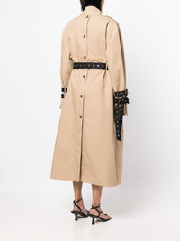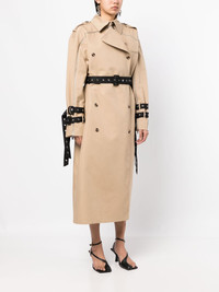 oversized belted-waist trench coat Highlights - Camel brown - Cotton - Belted waist - Zip details - Spread collar - Double-breasted button fastening - Long sleeves - Two side inset pockets Made in United Kingdom Composition Body: Cotton 100% SIZE & FIT Model measurements Height 5 ft 10 in(1.77 m) Bust/Chest 31.49 in(80 cm) Hips 35.43 in(90 cm) Waist 25.19 in(64 cm) Measurement BUST 54.33 in(138 cm) HIPS 56.69 in(144 cm) LENGTH 53.93 in(137 cm) Shoulder Width 21.65 in(55 cm) SLEEVE LENGTH 24.01 in(61 cm) WAIST 56.69 in(144 cm) FittingInformation Designed to be unstructured, offering a loose fit throughout The vented hem offers movement at the rear Made from a midweight non-stretch fabric This piece is only produced in one size