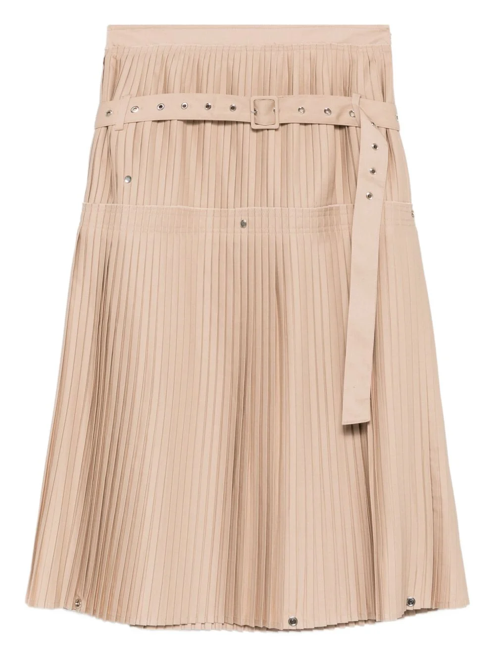 pleated belted midi skirt Highlights - Desert beige - Pleated design - Belted waist - Layered design Imported Composition Fabric 100% Washing instructions Read Manufacturer Guidelines