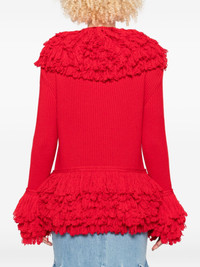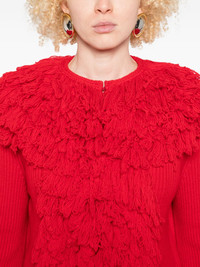 ruffled fringe cardigan Highlights - Red - Ribbed knit - Layered ruffles - Fringe trim - Long sleeves Imported Composition Wool 80%, Nylon 20% SIZE & FIT Model measurements Height 5 ft 9 in(1.75 m) Bust/Chest 34.64 in(88 cm) Hips 36.61 in(93 cm) Waist 26.37 in(67 cm) Washing instructions Read Manufacturer Guidelines