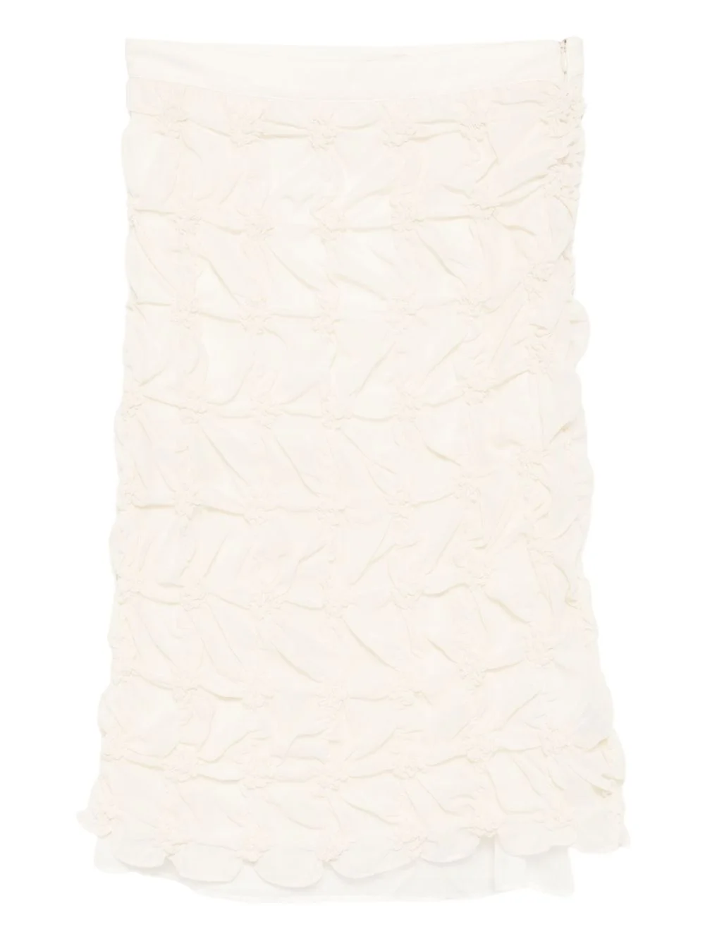 scrunched chiffon skirt Highlights - Cream white - Concealed side hook and zip fastening - Full lining Imported Composition Outer: Polyester 100% Lining: Polyester 100% SIZE & FIT Model measurements Height 5 ft 9 in(1.76 m) Bust/Chest 31.1 in(79 cm) Hips 35.03 in(89 cm) Waist 24.4 in(62 cm) FittingInformation This midi-length skirt is intended to be worn just below the waist Made from a lightweight non-stretch fabric Washing instructions Dry Clean Only