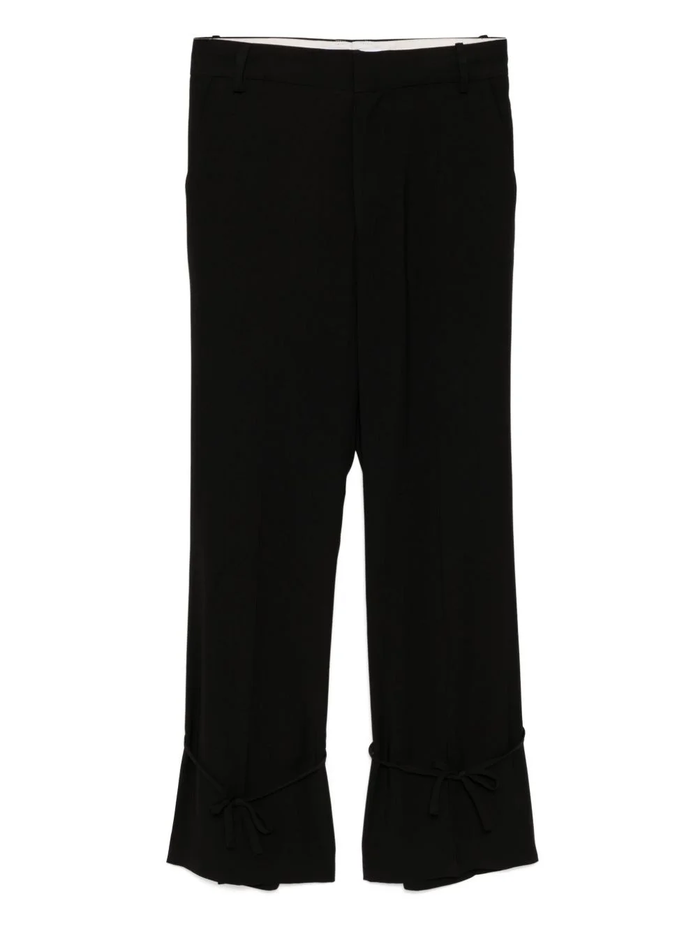 flared trousers Highlights - Black - Concealed front button, hook and zip fastening - Belt loops - Two side inset pockets - Two rear button-fastening pockets Imported Composition Viscose 92%, TENCEL™ 8% SIZE & FIT Model measurements Height 5 ft 9 in(1.76 m) Bust/Chest 31.1 in(79 cm) Hips 35.03 in(89 cm) Waist 24.4 in(62 cm) FittingInformation Designed for a straight-leg fit, these trousers allow for a close fit at the waist and an unrestricted, comfortable fit over the leg The tie fastening gives an adaptable and personalised fit Made from a midweight non-stretch fabric