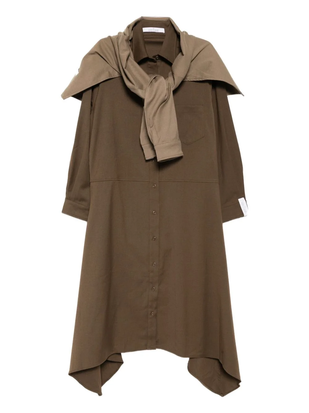 Tie dress Highlights - Dark brown - Front button fastening - Chest patch pocket - Asymmetric body Imported Composition Polyester 61%, Viscose 20%, Wool 17%, Elastane 2% SIZE & FIT Model measurements Height 5 ft 10 in(1.78 m) Bust/Chest 31.88 in(81 cm) Hips 37 in(94 cm) Waist 25.19 in(64 cm) FittingInformation Designed for a relaxed fit, this piece allows for comfort and movement when worn Made from a midweight stretch fabric, this piece offers elasticity and flexibility when worn