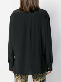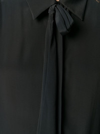 tie neck shirt Black silk blend tie neck shirt from ROKH featuring a classic collar, long sleeves and a straight hem. Imported Composition Acetate 79%, Silk 21% SIZE & FIT Model measurements Height 5 ft 10 in(1.77 m) Bust/Chest 35.03 in(89 cm) Hips 35.03 in(89 cm) Waist 23.62 in(60 cm) FittingInformation This piece fits true to size. We recommend you get your regular size Cut for a loose fit Made with a lightweight non-stretch fabric Washing instructions Dry Clean Only