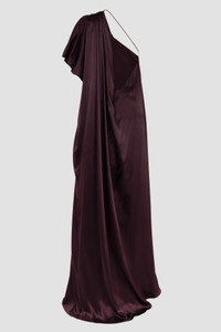 The AERIS dress beautifully combines movement with its elegant, backless one-shoulder silhouette. DETAILS & CARE Main Colour: Grape Product Composition: Silk Satin Product Care: Specialist Dry Clean SIZING & FIT Model Wears: Size 8 Sizing System: UK Sizing